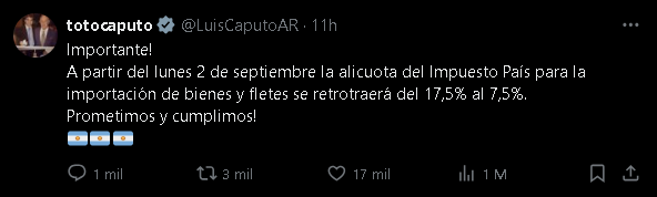El ministro de Economía, Luis Caputo, dio a conocer la iniciativa a través de su cuenta de “X” pero sin dar mayores detalles sobre el alcance, con lo cual sólo queda remitirse a los dos puntos descriptos, por lo que se mantendrá el pago del Impuesto para estos servicios.