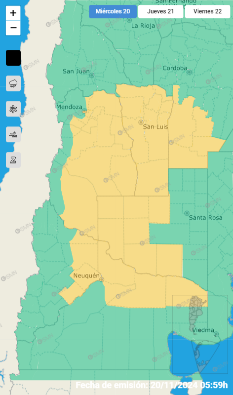 Desde el Servicio Meteorológico Nacional (SMN) emitieron una alerta amarilla por tormentas que afectará a gran parte de Mendoza en la tarde de este miércoles. Se suma también una intensa actividad eléctrica y, en algunos casos, caída de granizo.