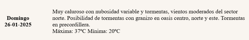 Los sectores agrícolas, especialmente los viñedos, deben estar atentos a la posibilidad de granizo, ya que podría ocasionar daños significativos en los cultivos.
