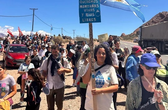 El objetivo de la movilización es presionar al Senado provincial para que rechace la Declaración de Impacto Ambiental (DIA) del proyecto de cobre y oro, que este lunes que acompañado por el presidente Javier Milei, supo la Agencia Noticias Argentinas.