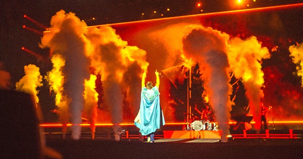 Chano, luciendo una icónica capa celeste, no tardó en adueñarse de la pasarela. Con los primeros compases de “Ella”, el teatro estalló con saltos y bailes, potenciado por un despliegue de fuegos artificiales y una narrativa visual que acompañó cada acorde.