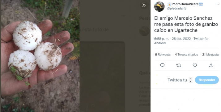 Precisamente en Ugarteche, se registraron enormes formaciones de hielo, mientras que en Vista Flores su tamaño fue un poco menor.