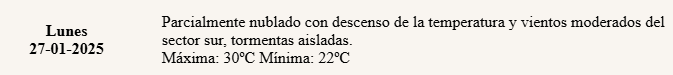De acuerdo a lo difundido por voceros del organismo, se espera un lunes “parcialmente nublado con descenso de la temperatura y vientos moderados del sector sur”.