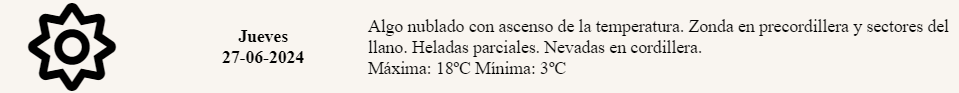 De acuerdo a lo difundido por voceros del organismo, se espera una jornada con “algo” de nubosidad y viento “Zonda en precordillera” y en “sectores del llano”.