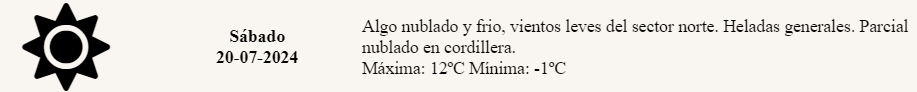 Además, anunciaron “heladas generales” y nubosidad en cordillera. En cuanto a la máxima, pronosticaron que la misma no superaría los 12 grados.