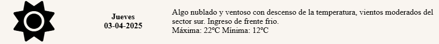 De acuerdo a lo difundido por voceros del organismo, se espera un día “algo nublado y ventoso con descenso de la temperatura”.