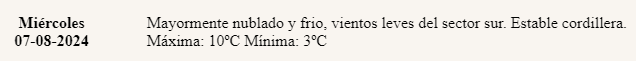 Además, anunciaron la llegada de “vientos leves del sector sur” y estabilidad en cordillera.