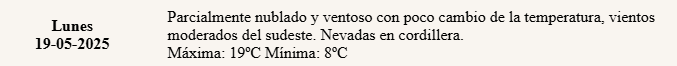 De acuerdo a lo informado por voceros del organismo, se espera un lunes “parcialmente nublado y ventoso con poco cambio de la temperatura”.