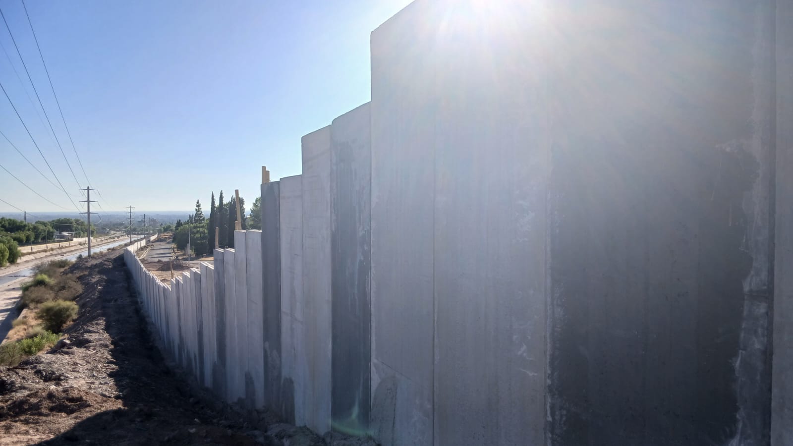 A pesar de la orden municipal, este jueves la UNCuyo sigue trabajando en el lugar y avanza con la construcción del nuevo muro perimetral aislando a los populosos barrios Olivares, San Martín y Flores.