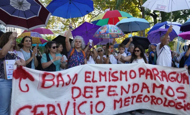 En ese marco, días atrás los trabajadores del SMN llevaron adelante una protesta en el barrio de Palermo bajo la modalidad de un “paragüazo”. La intervención, realizada frente a una de las sedes del organismo, consistió en la presencia de empleados con paraguas abiertos como símbolo de su trabajo cotidiano.