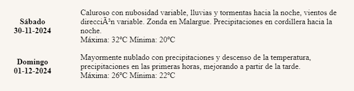 Comenzando por sábado, se espera por una jornada bastante calurosa con lluvias y tormentas hacia la noche en casi toda la provincia.