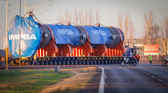 Tras varios días detenido, este jueves desde las 7 de la mañana se retoma el operativo para trasladar el reactor de 456 toneladas de IMPSA hacia la refinería de YPF en Luján de Cuyo.