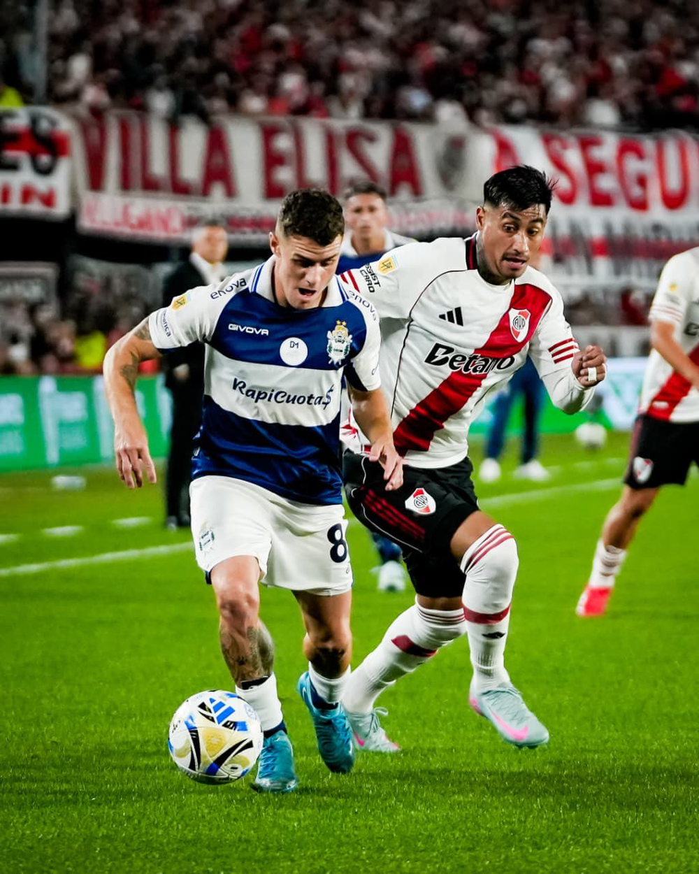 La más clara ocurrió a los 36′, cuando la defensa visitante despejó a medias un envío de Acuña, y Lautaro Rivero apareció como un delantero más en la medialuna del área para rematar cerquita del palo.