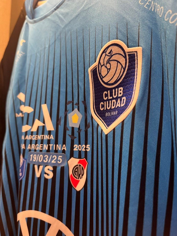 La casaca también llevó los escudos de ambos equipos, el logo de la Copa Argentina, la marca deportiva y los sponsors. Sobre este particular detalle, Sebastián Alzueta, secretario del club, explicó: “Es una forma de homenajear a River por parte de Ciudad de Bolívar. Se usó exclusivamente para este partido”.