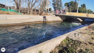 Ocurrió en la intersección de calles Juan XXIII y Los Filtros, a la altura del barrio El Molino. Se desconocen hasta el momento las causas por las cuales la conductora del vehículo, un Renault Clio, perdió el dominio y se precipitó al cauce de agua. Fue arrastrado hasta calle Libertador, donde aún permanece para ser retirado.