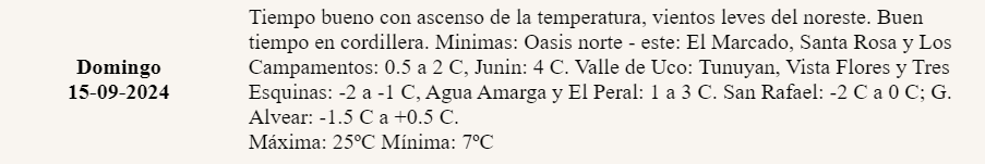 Además, pronosticaron “buen tiempo en cordillera”. En cuanto a la máxima, indicaron que la misma no superaría los 25 grados.