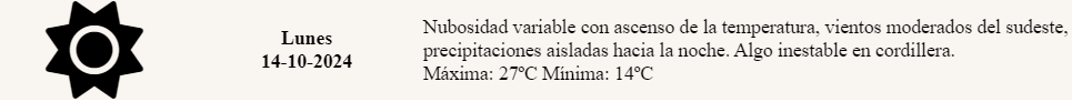 Por otra parte, podrían registrarse “precipitaciones aisladas hacia la noche” y cierta inestabilidad en cordillera.