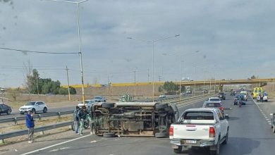 Caos vehicular en Acceso Sur tras el vuelco de una camioneta: hay un herido