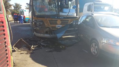Aparatoso choque entre dos colectivos y un auto en el Acceso Norte dejó a varios heridos