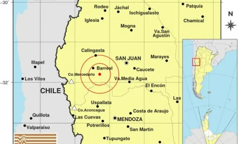En tanto, según la Intensidad Mercalli, el sismo alcanzó una intensidad de III a IV en la localidad sanjuanina de Barreal, lo que implica que lo perciben algunas personas en reposo y objetos colgantes oscilan mientras que fue percibido con intensidad III en Calingasta, Uspallata, Ciudad de San Juan y Ciudad de Mendoza, donde lo sintieron alguna personas en reposo.
