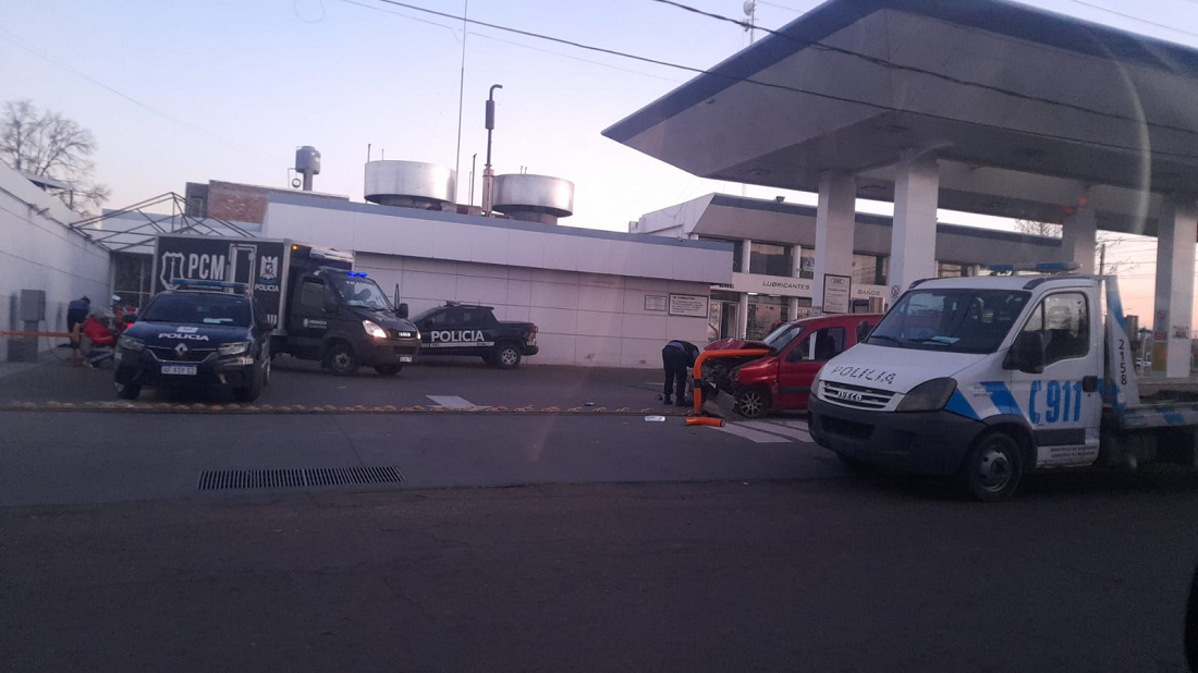 Esta situación lo llevó a perder el dominio del rodado que guiaba, y terminó impactando contra una camioneta y luego contra las barandas de contención de una estación de servicio de la zona.