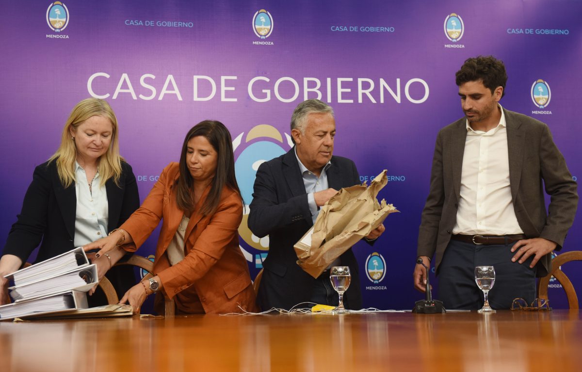 El Gobernador Alfredo Cornejo encabezó la apertura de sobres, acompañado por el ministro de Gobierno, Infraestructura y Desarrollo Territorial, Natalio Mema, y la subsecretaria de Infraestructura y Desarrollo Territorial, Marité Badui. También estuvieron presentes la vicegobernadora Hebe Casado; los intendentes Matías Stevanato (Maipú) y Raúl Rufeil (San Martín); el presidente de la Cámara de Diputados, Andrés Lombardi, el subsecretario de Transporte, Luis Borrego, autoridades legislativas y funcionarios del Gabinete provincial.