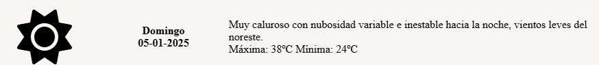 Para este domingo, se anticipa una jornada muy calurosa, con nubosidad variable e inestabilidad hacia la noche.