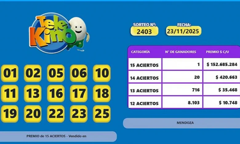 El Telekino volvió a repartir millones este domingo, y esta vez el golpe de suerte tuvo destino mendocino. En el sorteo número 2403, un apostador local acertó los 15 números y se quedó con $152.685.284.