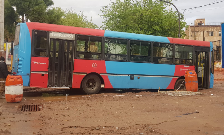 Las fuertes lluvias que azotan a la Ciudad de Mendoza, sumado a las interminables obras que Aguas Mendocinas y la Municipalidad de Ciudad vienen ejecutando desde hace meses en la capital provincial, llevaron a que un micro quede atascado en pleno centro.