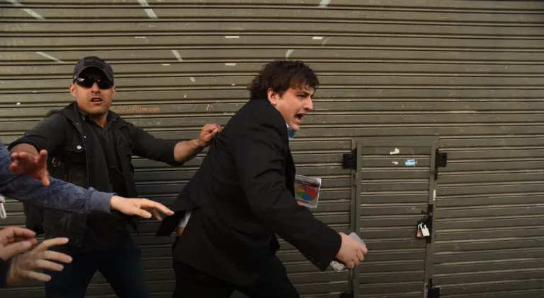 Fijap intentó huir por la avenida Callao, pero fue interceptado por dos hombres que lo acorralaron. Un oficial de policía que estaba en la zona intervino y logró ponerlo a salvo dentro de una pizzería cercana. A pesar de esto, los manifestantes atacaron la fachada del local, obligando a los dueños a cerrar las puertas para evitar mayores destrozos.