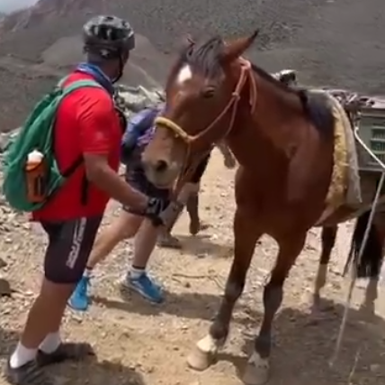 Los deportistas, al toparse con la mula, lograron sacarle la carga y la liberaron, cuando estaba a centímetros de caer al vacío.
