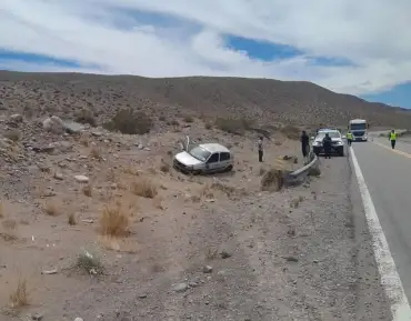 Un accidente vehicular ocurrió este mediodía en la Ruta 7, a unos 10 kilómetros de Uspallata en dirección a Alta Montaña. Según informaron las autoridades, un Renault Clio protagonizó un vuelco tras sufrir el reventón de uno de sus neumáticos.