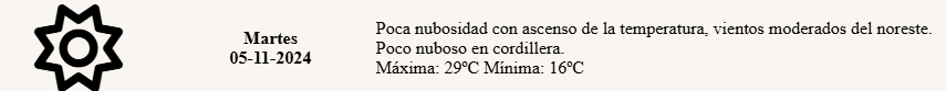 Además, anunciaron la llegada de “vientos moderados del noreste” y poca nubosidad en cordillera. En cuanto a la máxima, indicaron que la misma no superaría los 29 grados.