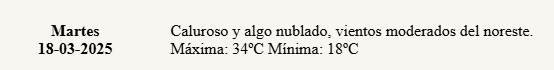 Además, anunciaron la llegada de “vientos moderados del noreste” y una amáxima que podría llegar a los 34 grados.