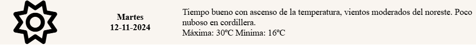 De acuerdo a lo difundido por voceros del organismo, se espera un martes con “tiempo bueno con ascenso de la temperatura”.